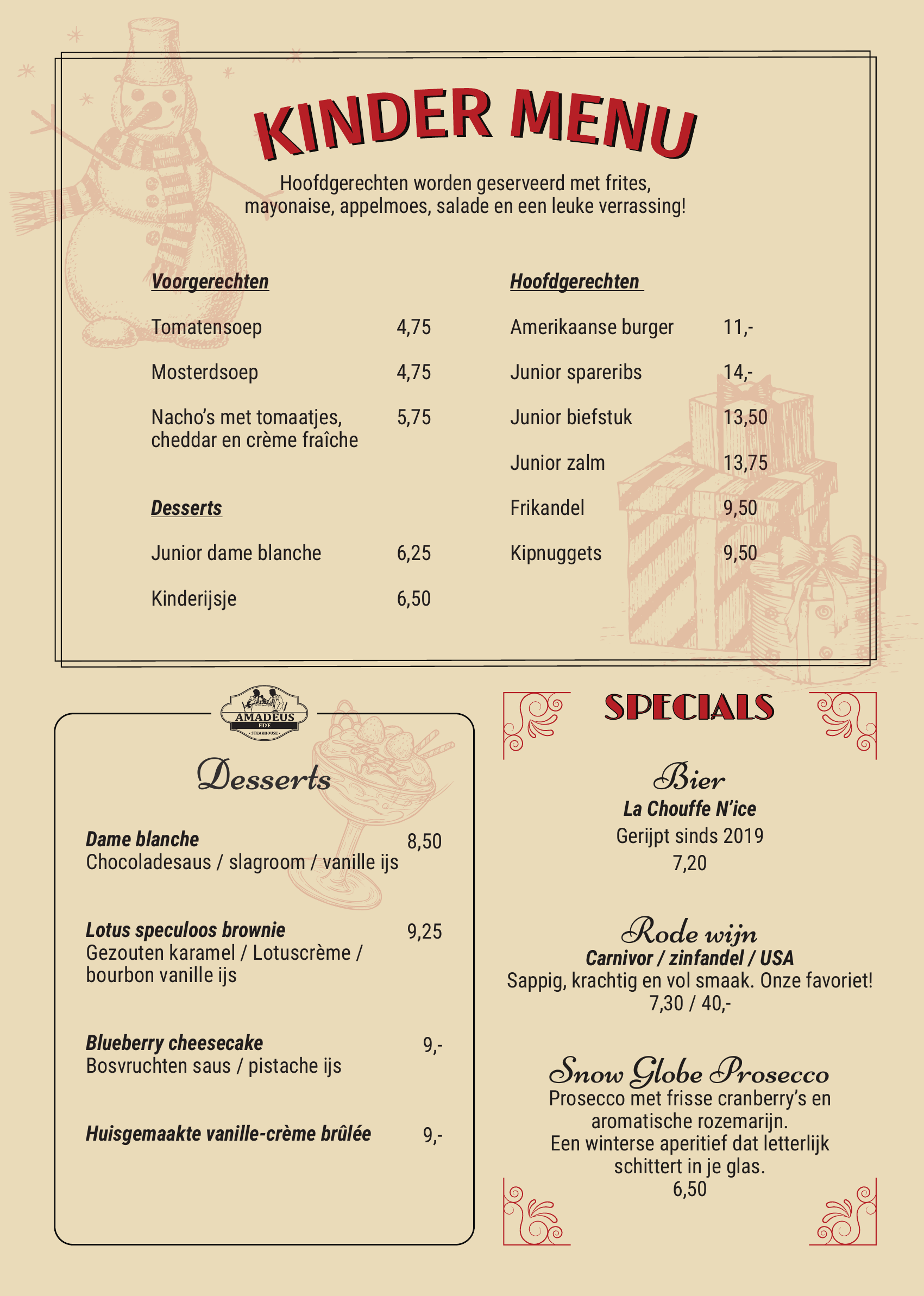 We hebben dit kerstmenu met zorg samengesteld om tijdens deze feestelijke dagen de kwaliteit, gastvrijheid en snelheid te kunnen bieden die je van ons gewend bent.